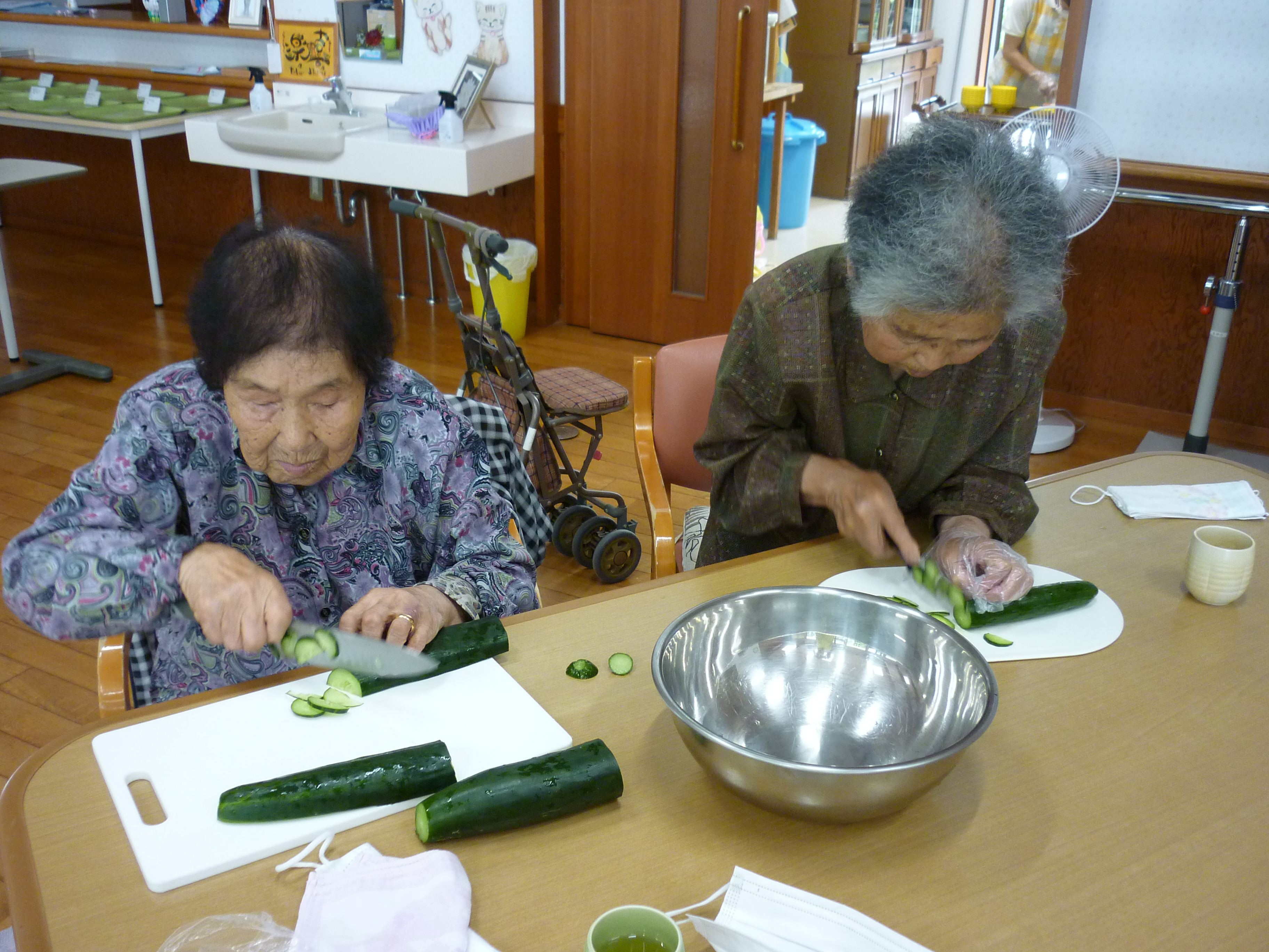 キュウリ収穫🥒 2021年10月1日 あゆみの畑で作ったキュウリを収穫しました(*^-^*) そのキュウリを使って、たたきキュウリや浅漬けをつくりました(*^。^*) 壁画もにぎやかにしましたよ❣ 日々の出来事