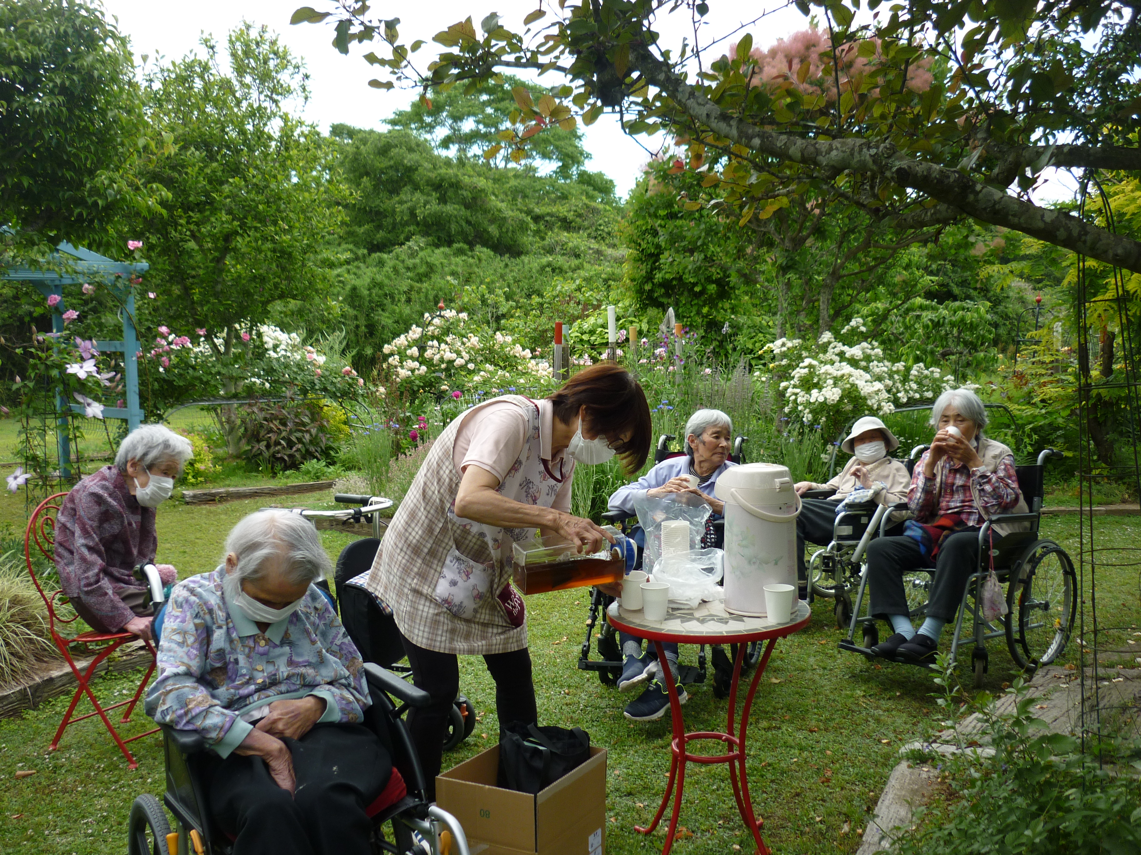 お出かけデイ(バラ🌹観賞) 2024年6月5日2024年11月5日 バラの奇麗な季節です🌹 あゆみの皆さんでバラを見に行きました! 散策の途中で、あずま屋で お茶とお菓子で一休みです(*^-^*) お天気にも恵まれ、とてもきれいなバラ🌹でした!! 日々の出来事