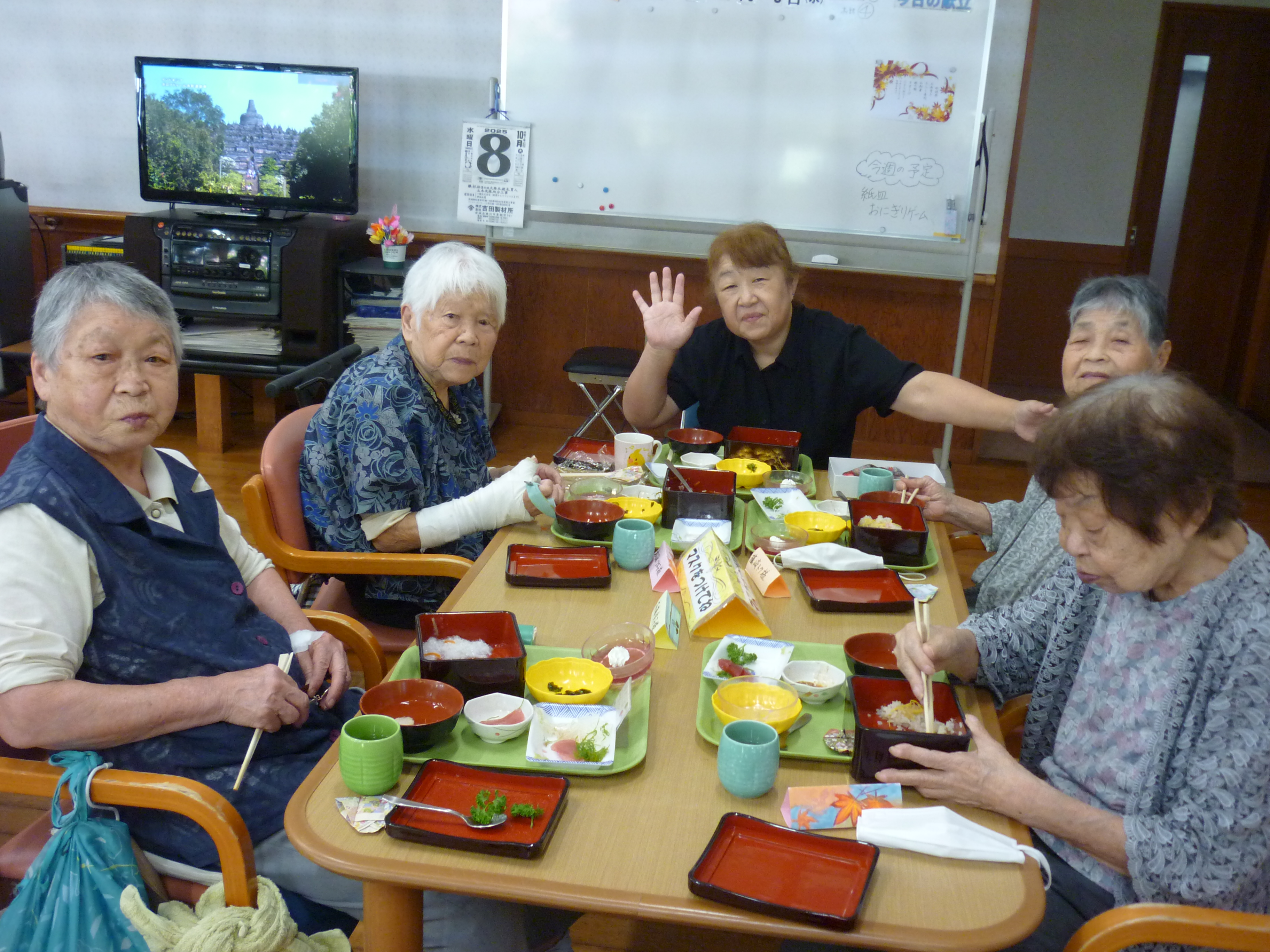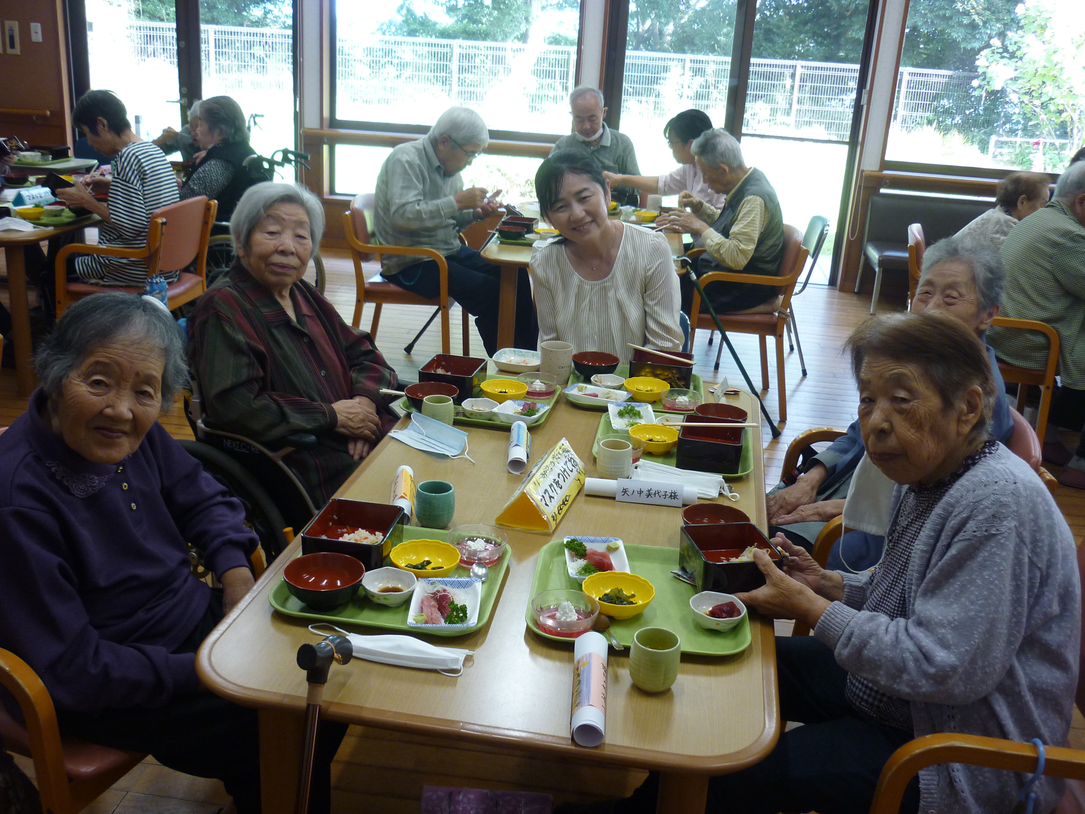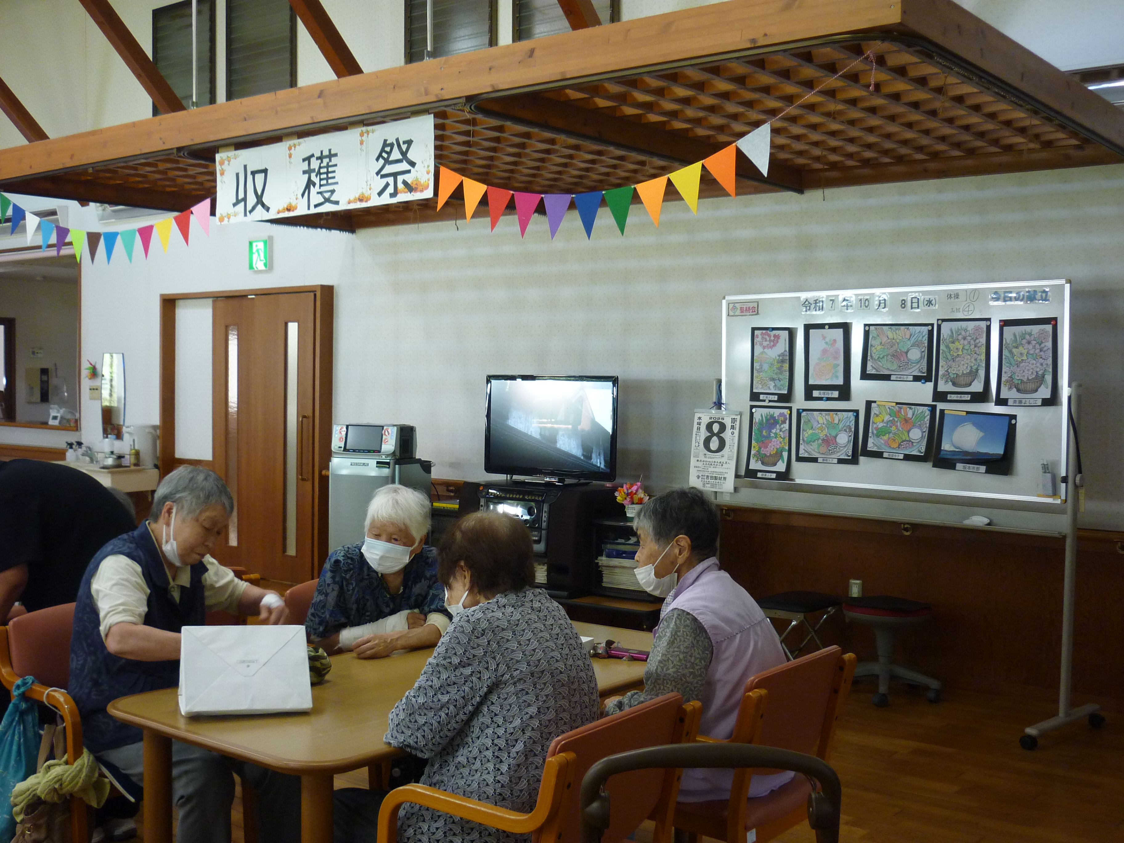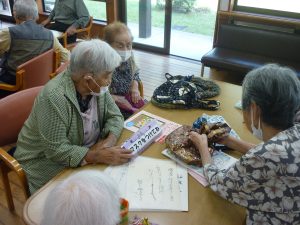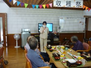 収穫祭(10/8) 2026年1月29日 毎年恒例の【収穫祭】 今年は、趣味活動や昔やっていたことなど みなさんの前で説明してご披露いただきました(*^-^*) 編み物や制作物、俳句や書道、絵画、、、 どれも見事なものでした! 昔、母と一緒の歌った童謡を歌ってくださりました(*^^)v 昼食の準備も一緒にしました🍚 おいしそうですね(#^.^#) お楽しみの会食です 職員も一緒に! また来年、楽しいことをしていきましょう!! 日々の出来事
