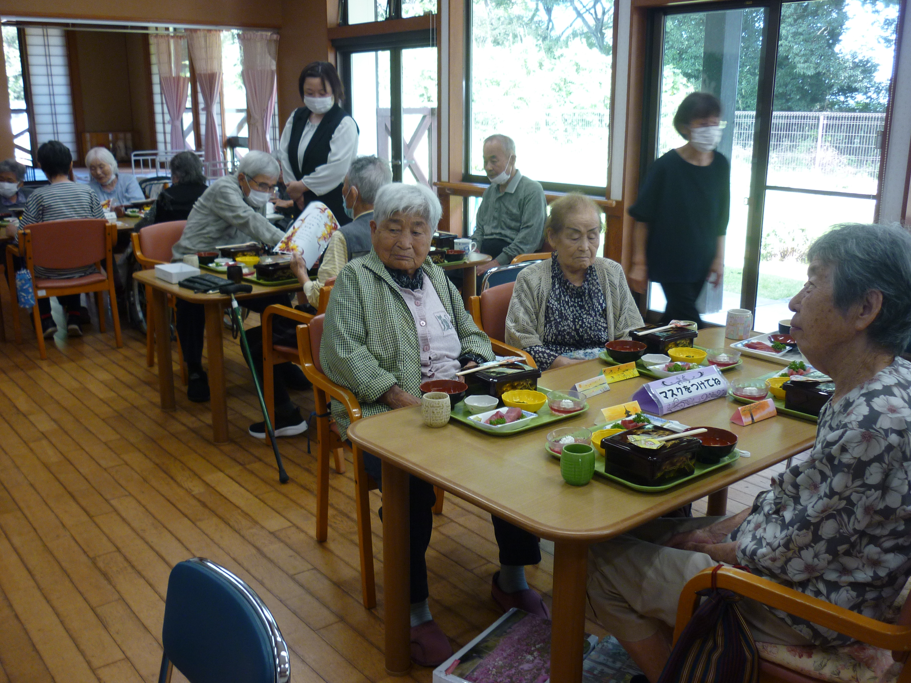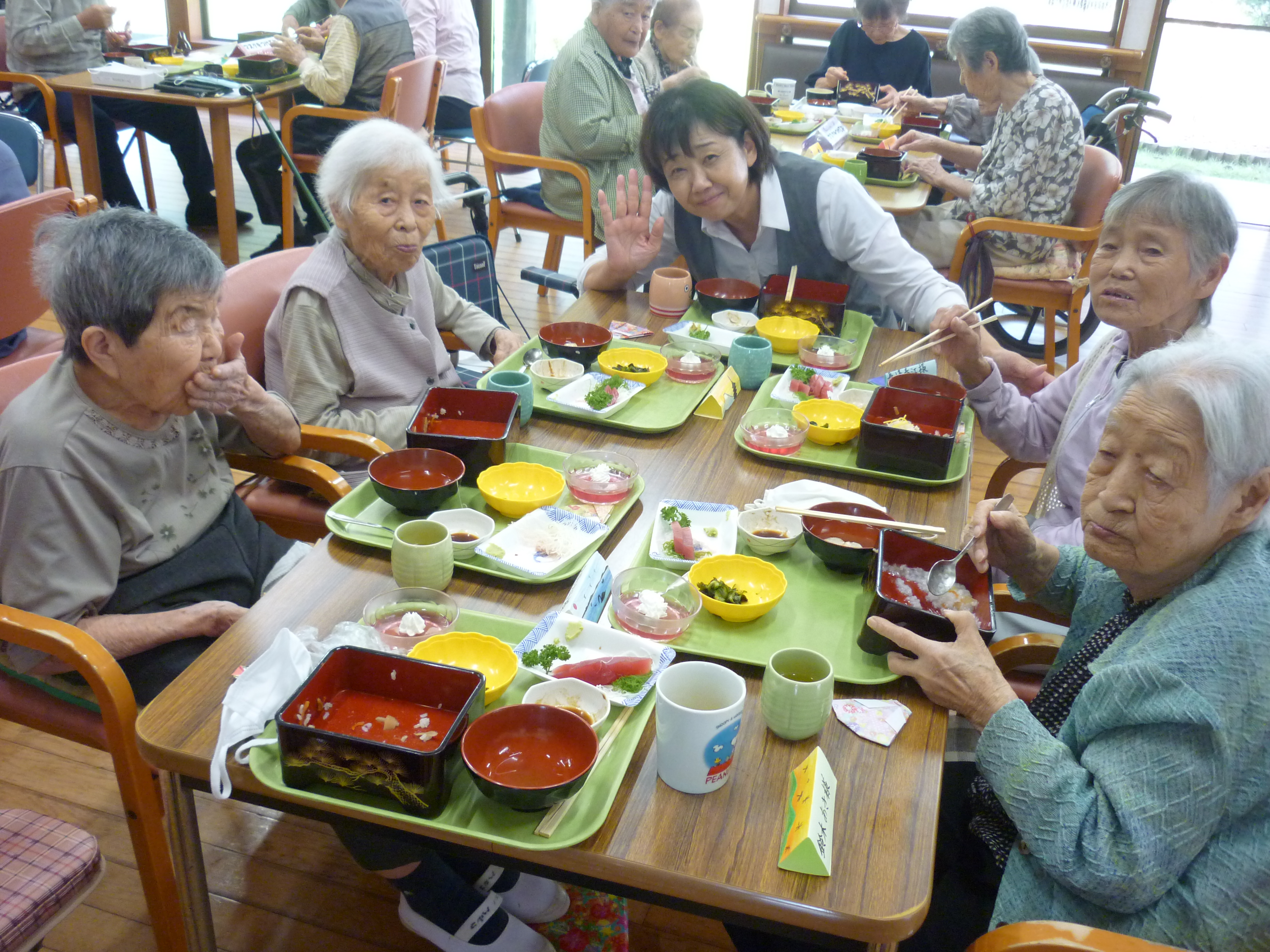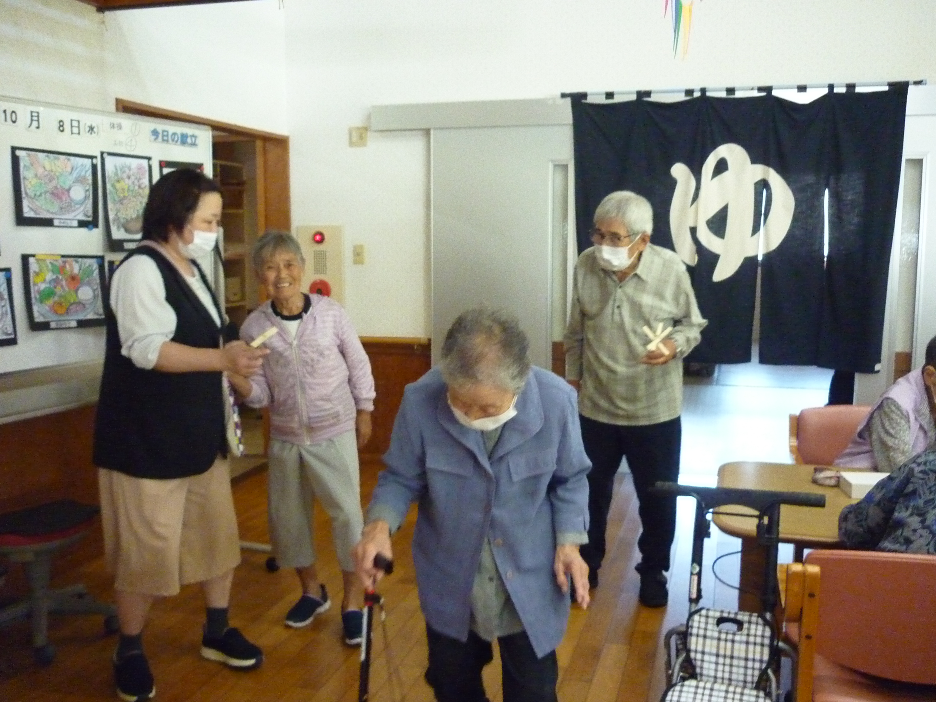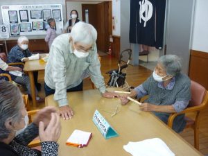 収穫祭(10/8) 2026年1月29日 毎年恒例の【収穫祭】 今年は、趣味活動や昔やっていたことなど みなさんの前で説明してご披露いただきました(*^-^*) 編み物や制作物、俳句や書道、絵画、、、 どれも見事なものでした! 昔、母と一緒の歌った童謡を歌ってくださりました(*^^)v 昼食の準備も一緒にしました🍚 おいしそうですね(#^.^#) お楽しみの会食です 職員も一緒に! また来年、楽しいことをしていきましょう!! 日々の出来事