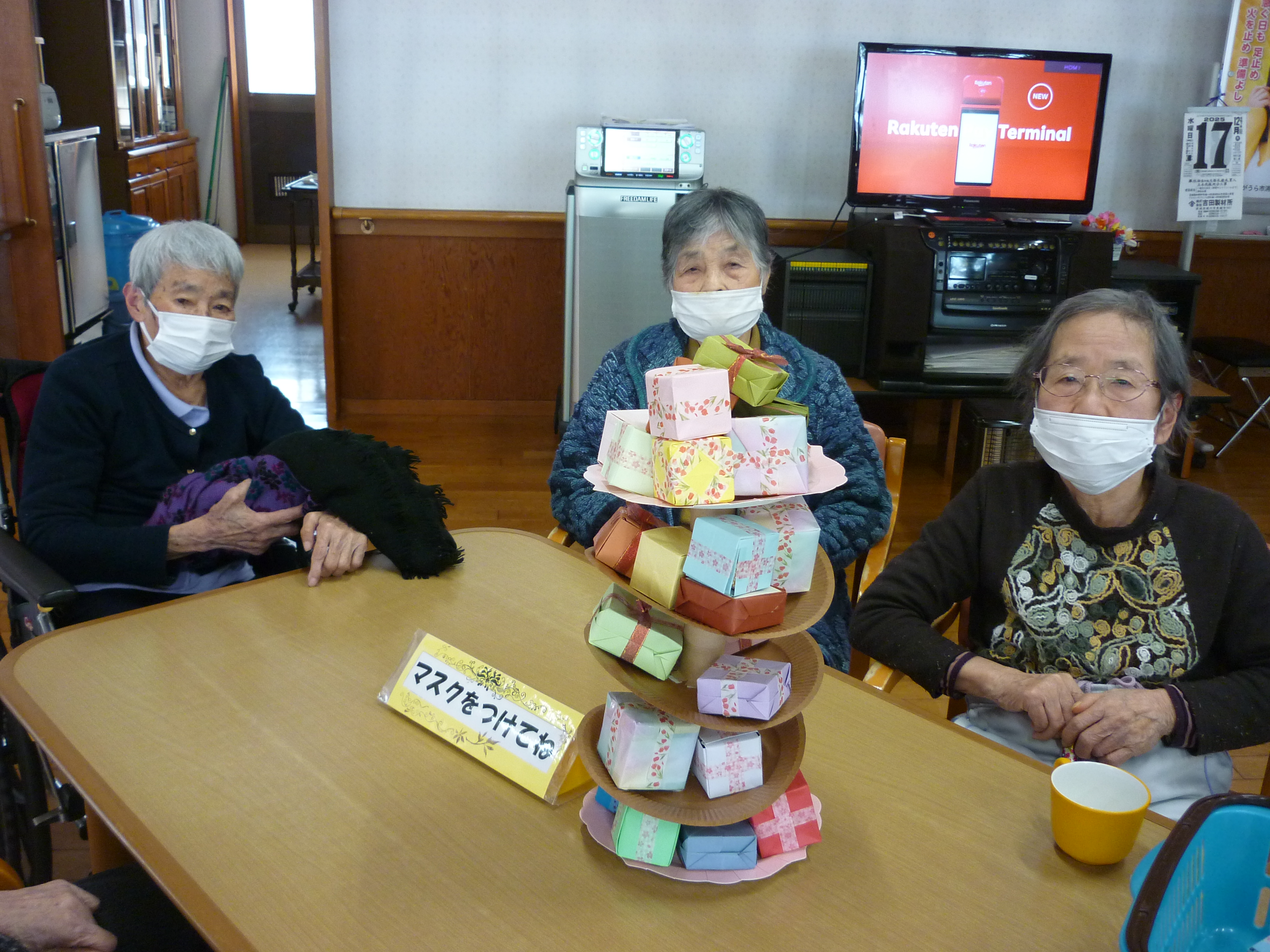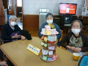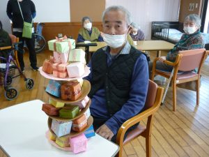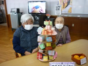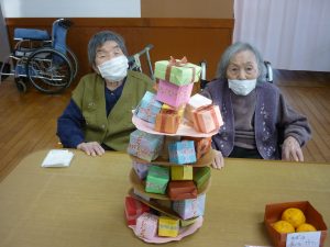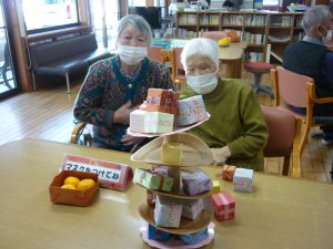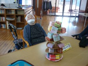 今週のレクリエーションは、プレゼントタワー どれだけ高く積み重ねられるでしょう!!