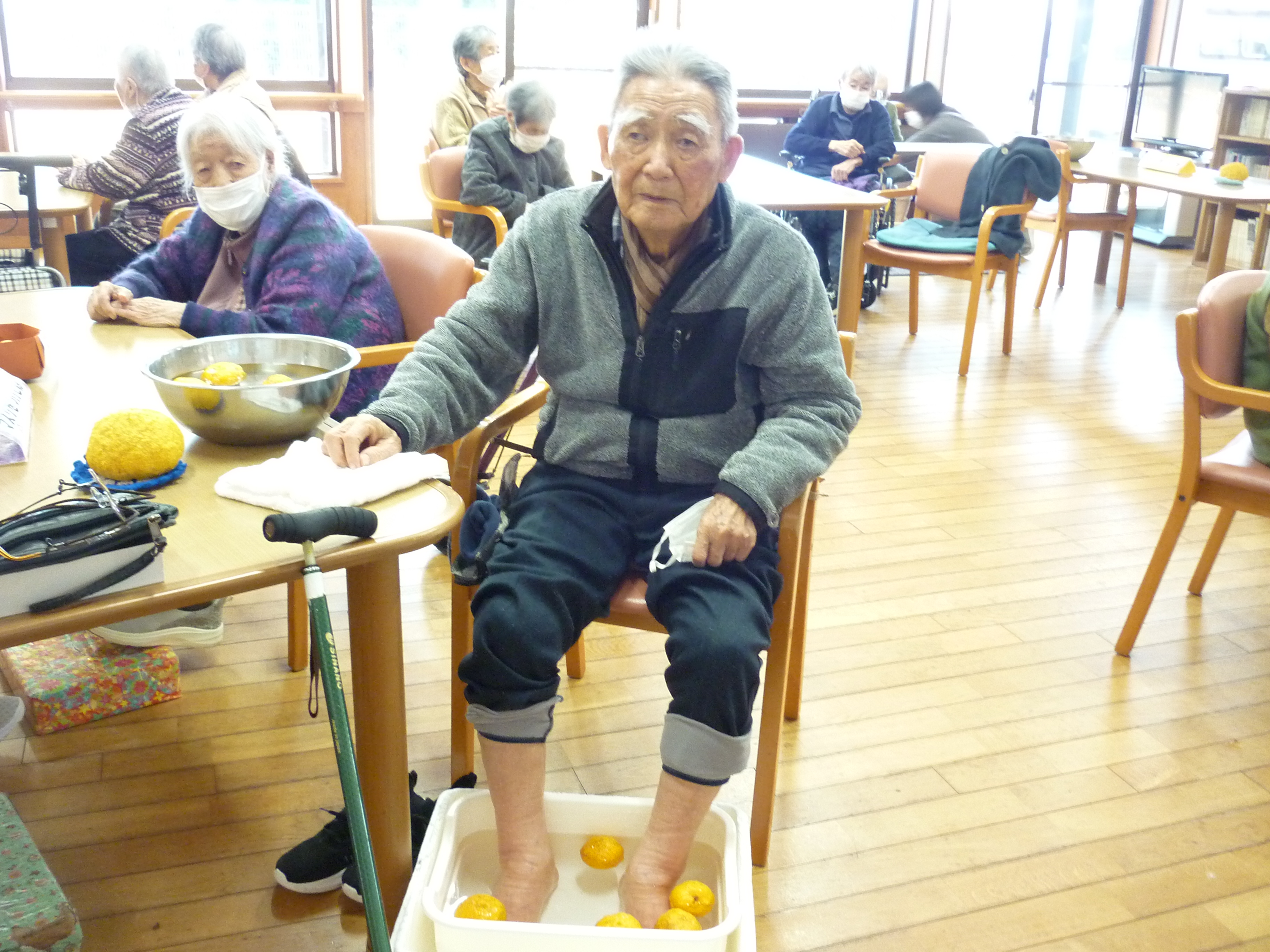 ゆず湯🍊12/22 2026年1月29日 12/22冬至 ゆず湯に入りました! 香りもよく、体がとてもよく温まりました(*^-^*) 普段、あゆみで入浴しない方も、足浴や手浴を楽しみました! 日々の出来事