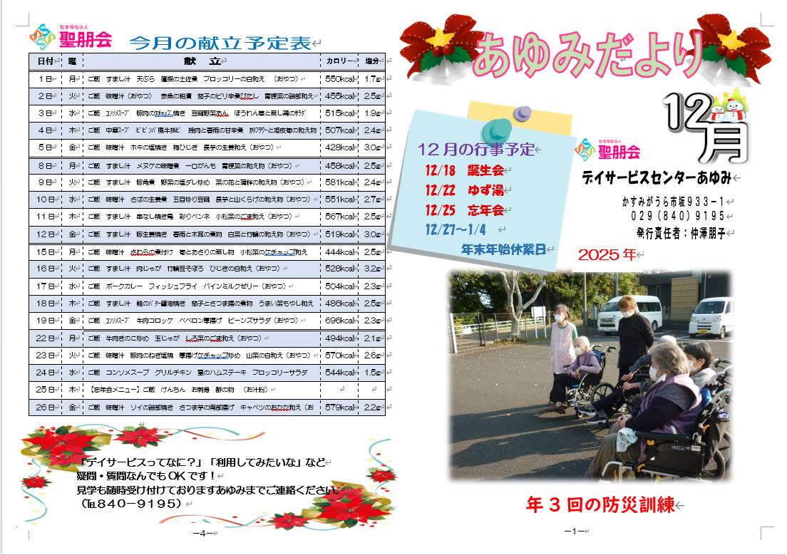あゆみだより12月号 どうぞお楽しみください